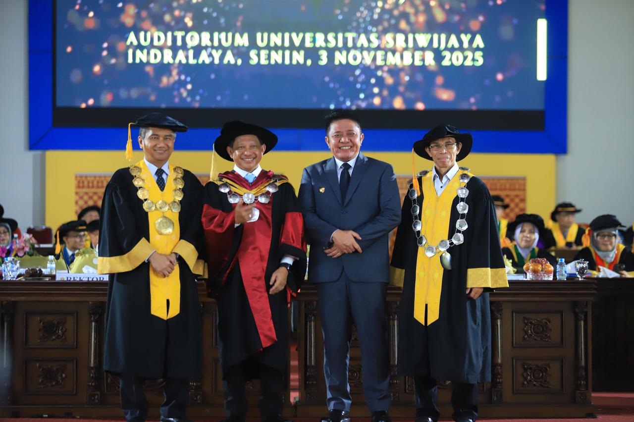 Koran Musi, Ogan Ilir – Gubernur Sumatera Selatan, Dr. H. Herman Deru, menghadiri Dies Natalis ke-65 Universitas Sriwijaya (Unsri) yang digelar di Auditorium Unsri Kampus Indralaya, Kabupaten Ogan Ilir, Senin (3/11/2025) pagi.
