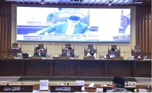 Rapat paripurna dipimpin Wakil Ketua DPRD Sumsel H M Giri Ramanda N Kiemas, SE, MM, Hj Kartika Sandra Desi, SH, MM dan Muchendri Mahzarekki, SE.