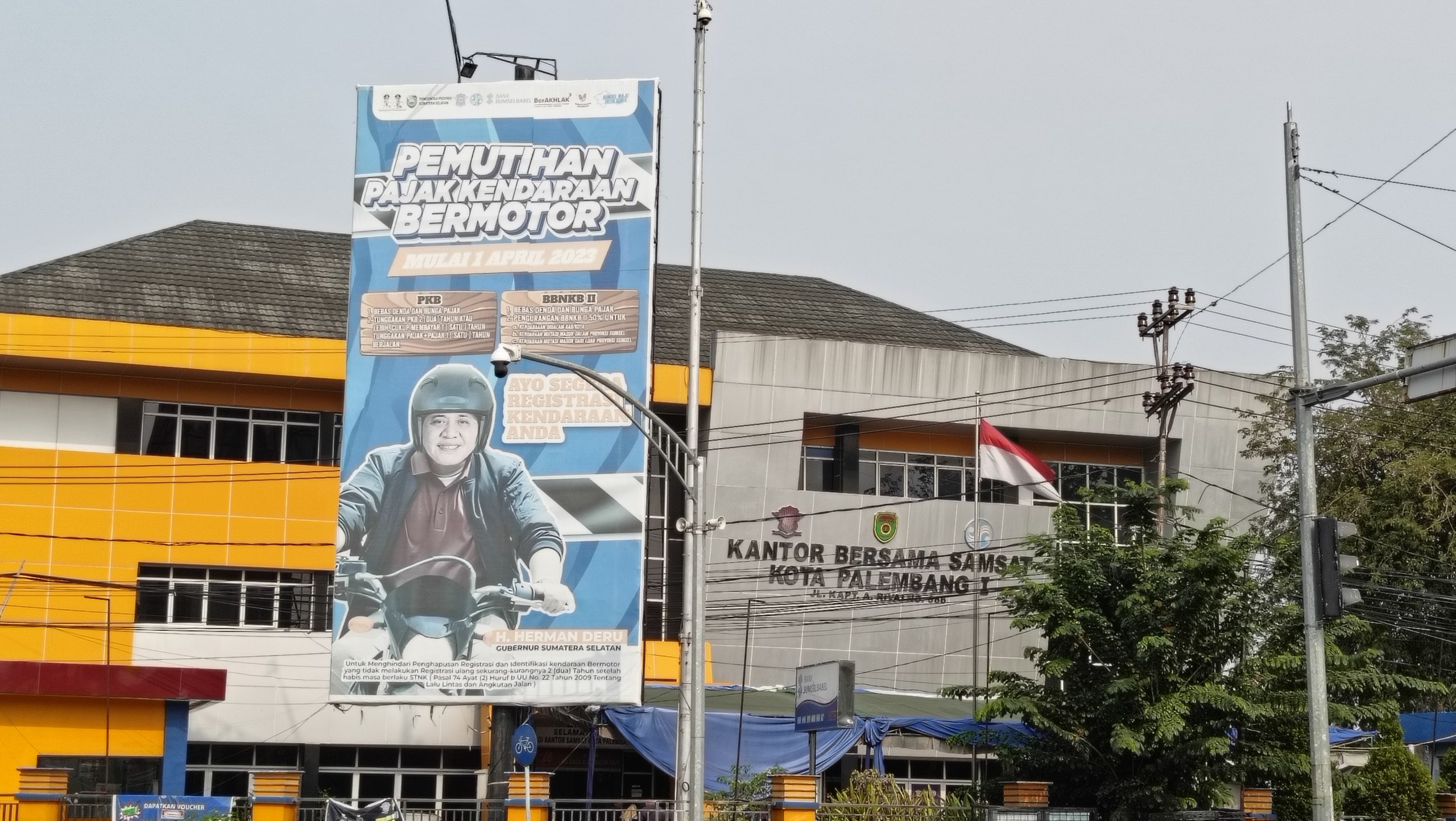 “Pernah baca berita kalau Gubernur sudah diganti karena masa jabatan Pak Herman Deru sudah habis. Tapi baliho sebesar ini kok masih terpasang di depan kantor Samsat,” ujar Syafrudin, Selasa 17 Oktober 2023.